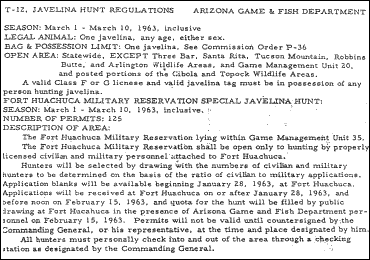 Upon Sunset Mountain forty miles northeast of Tucson, and having already shot his pig, Brother Branham directed his companions to a place where they should find some pigs he had spotted. Climbing a vantage point he sat down to rest, and plucking a bullheader off his trouser leg he realized he was in the vision but seeing a herd of hogs on the mountainside opposite he threw down the bullheader, shouting, "I'll get them, I'll hang a piece of paper on this ocotillo to let you know which way to go, and we'll get Brother Fred."