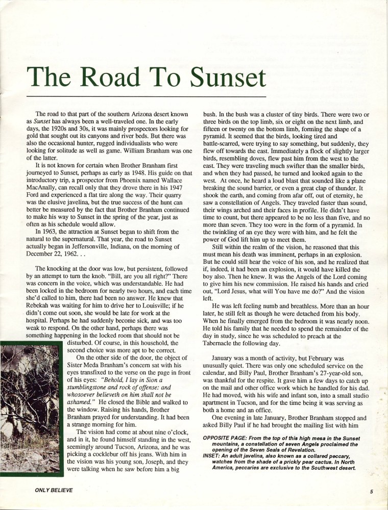 "The Road to Sunset," an article published in the June 1992 issue of ONLY BELIEVE magazine discusses the Cloud photographed on February 28, 1963 and details the hunting trip in March; the "blast," his union in the cloud of angels, and his new commission. nl752.htm